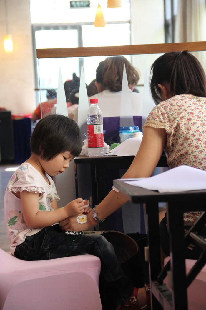 最温馨的一幕——一位带着宝宝来参加考试的母亲一边答题,一边腾出左手让宝宝贴纸
